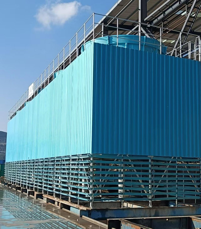 ②外循环:在冷却塔中,为冷却塔本身进行降温。不与内循环水相接触,只是通过冷却塔内的紫铜管表冷器进行换热散热。在此种冷却方式下,通过自动控制,根据水温设置电机的运行。