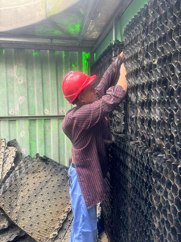 泸州公司500吨两台光缘牌冷却塔,在大雨中安装完毕