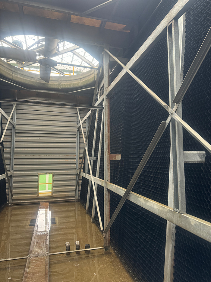 双流天府国际生物,1500吨冷却塔准备填料更换,光缘玻璃钢有限公司,值得使用方信任!